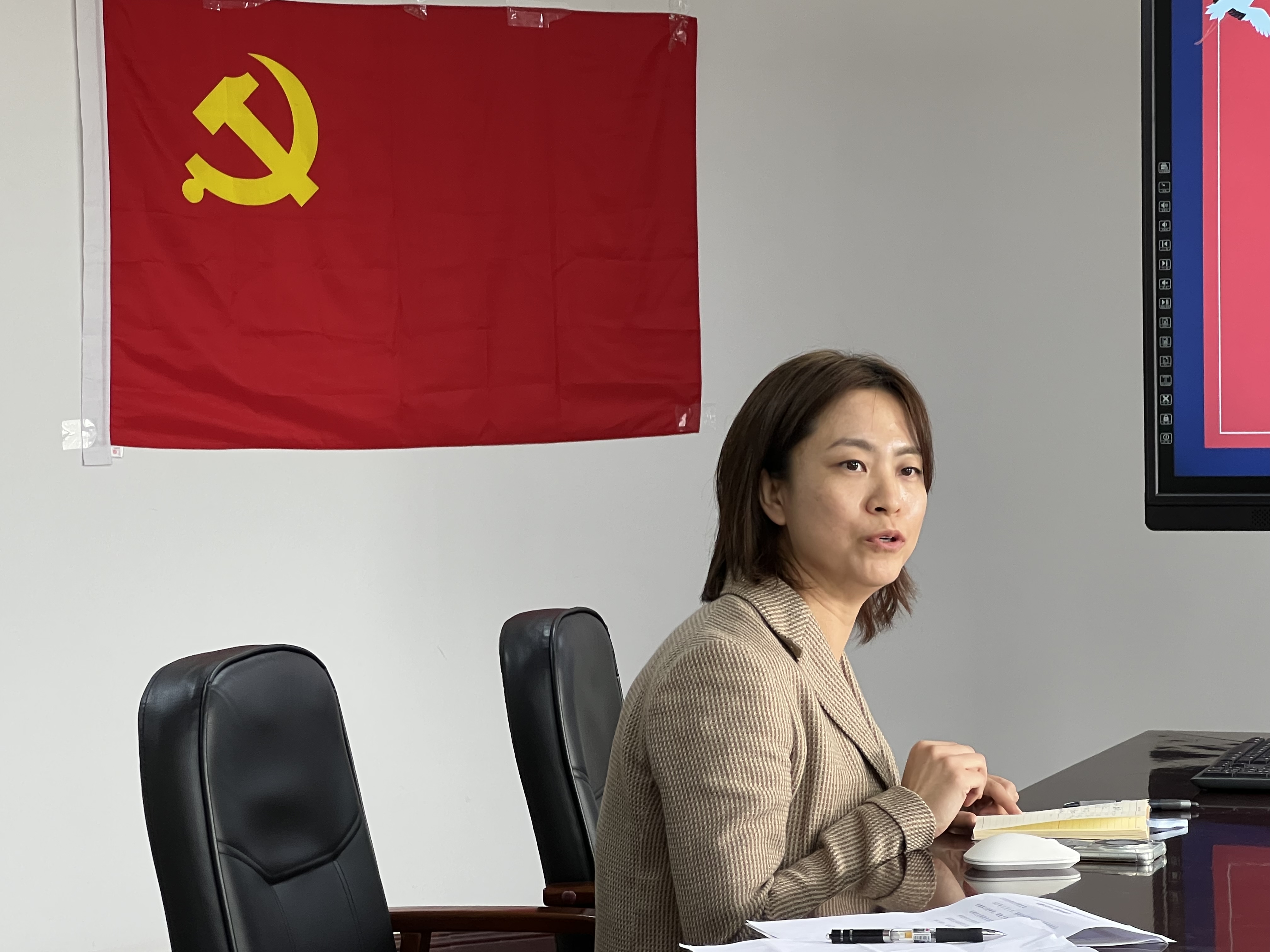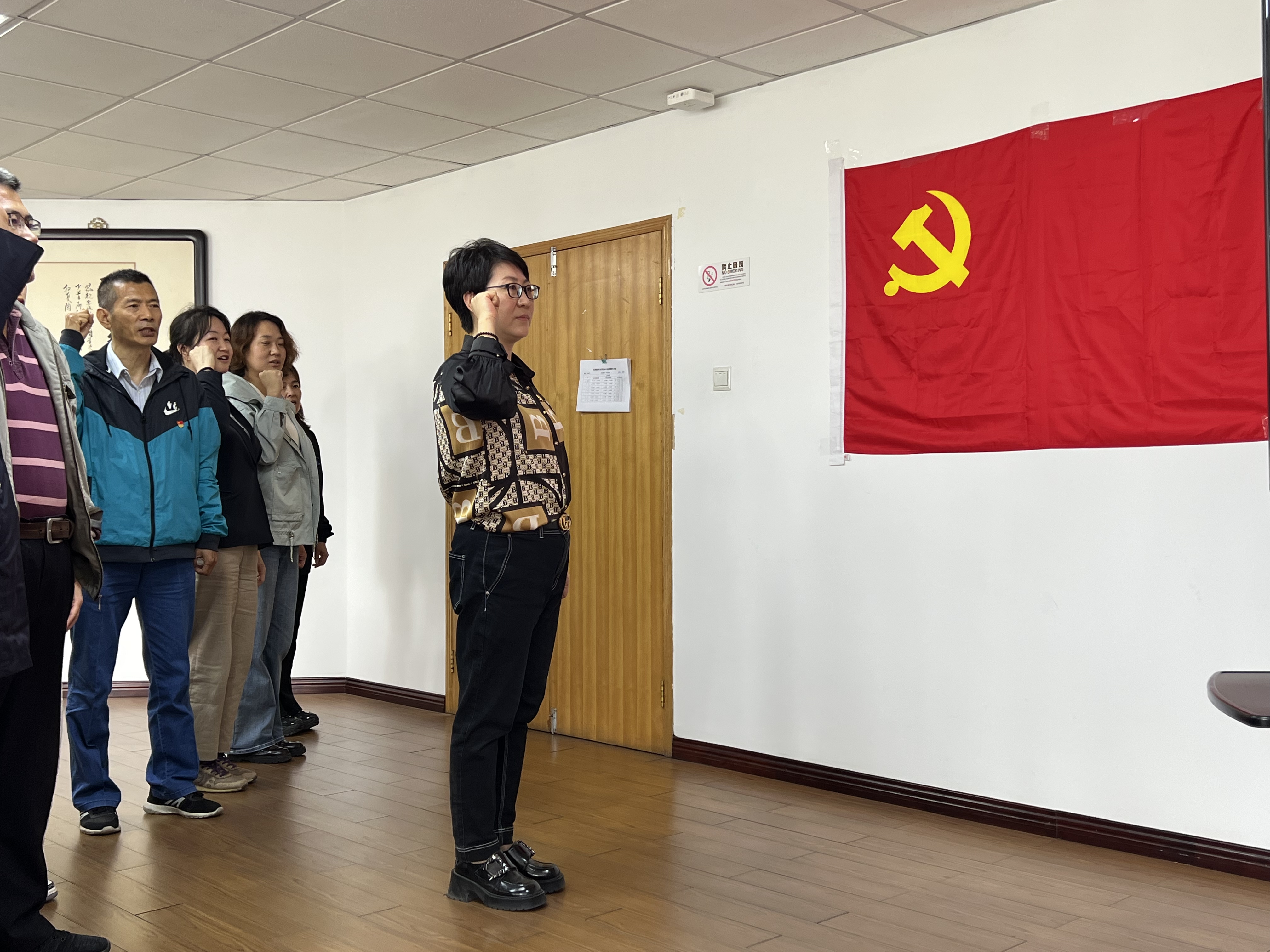 王晓旭书记带领全体党员面向党旗重温入党誓词。