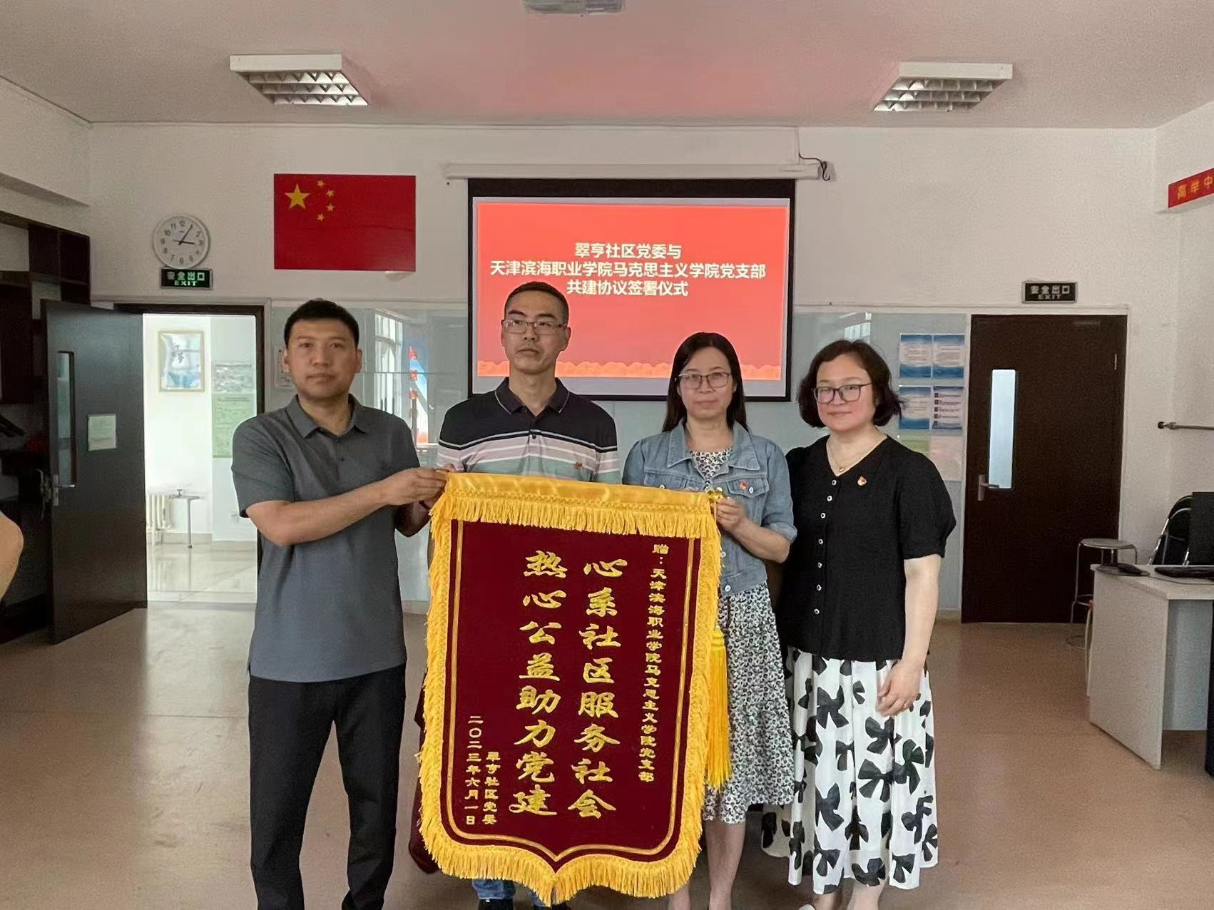为深入学习贯彻党的二十大精神,更好地发挥党建引领作用,促进党建优势互补,实现“结对共建”的目标,6月1日下午,马克思主义学院党支部与泰达街道翠亨社区党委举行党建共建签约活动,马克思主义学院全体教师参加了本次共建协议的签署仪式。