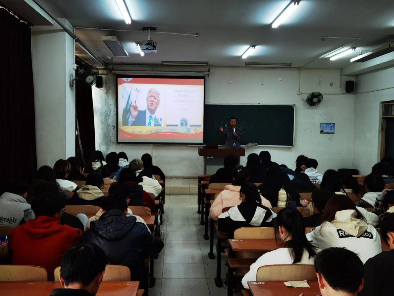 为了落实天津市教育两委2023年“培根铸魂育新人 勇毅前行向未来”思想政治理论教授团主题宣讲工作有关要求,进一步学习贯彻习近平新时代中国特色社会主义思想,增强学生居安思危的国家安全意识。11月8日,马克思主义学院举办天津市高校思想政治理论教授团主题宣讲活动。天津市高校思想政治理论宣讲教授团特聘教授、陆军军事交通学院基础部政治教研室邵刚教授为永利官网100余名同学开展《我国周边安全形势及热点问题分析》的主题讲座。