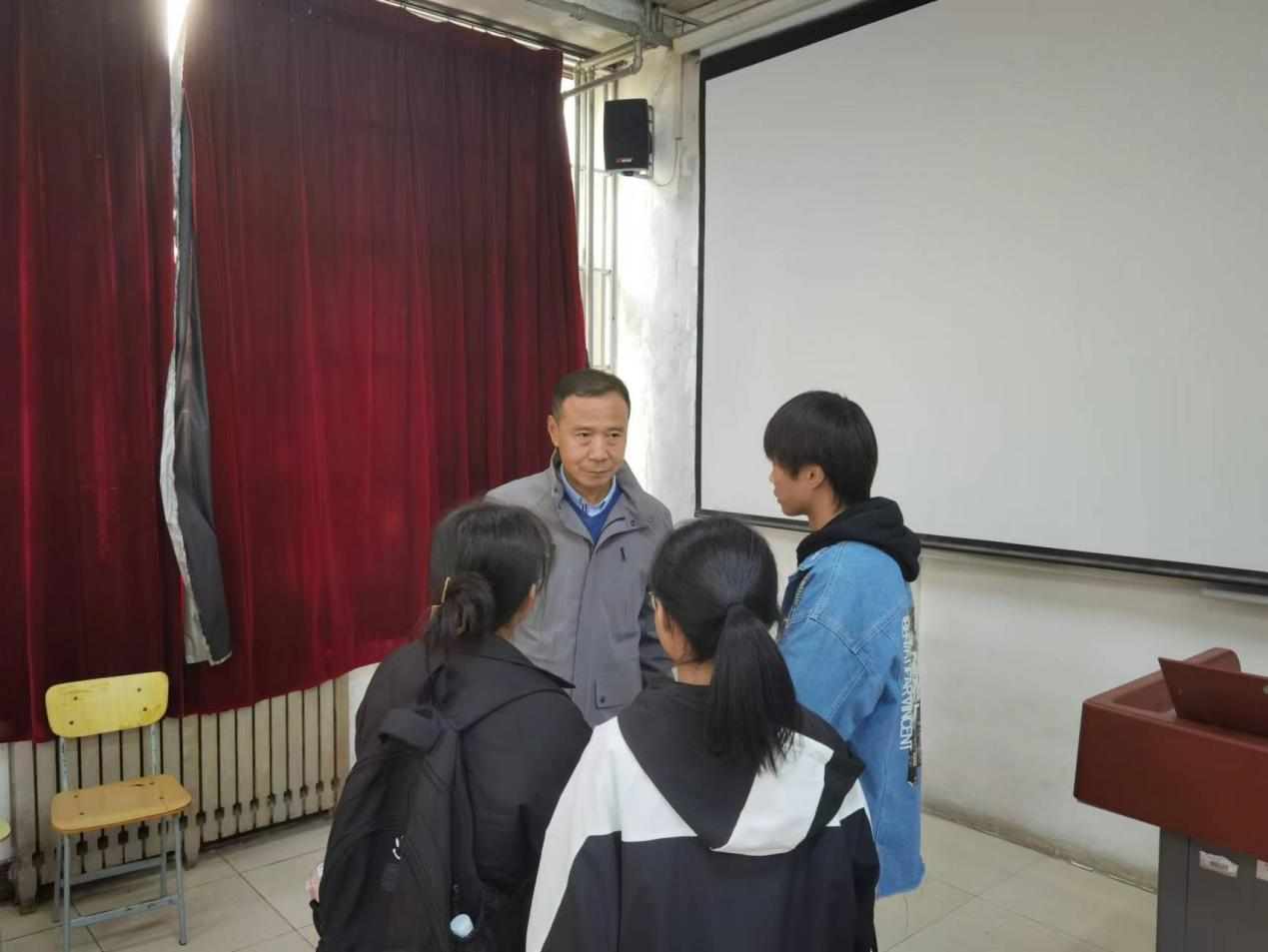 宣讲结束后,同学们兴趣盎然、精神振奋,争相围在邵教授身边,与他进行交流互动。