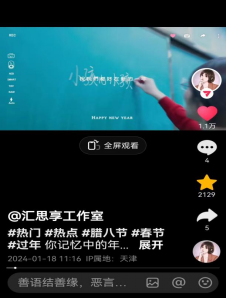 “汇思享工作室”自成立以来紧紧围绕“三全育人”建设理念,紧扣时代主旋律,积极探索网络育人新模式,聚焦学生关切,解答学生困惑,贴近学生生活,拍摄“一封书信”、“传统节日”、“学生就业”等多个系列视频,努力打造网络育人特色品牌。截至目前,“汇思享工作室”抖音平台共发布作品79条,账号粉丝量2.3万,点赞总量高达7.9万。其中多部作品被学习强国平台转载。