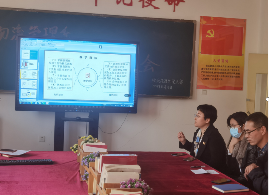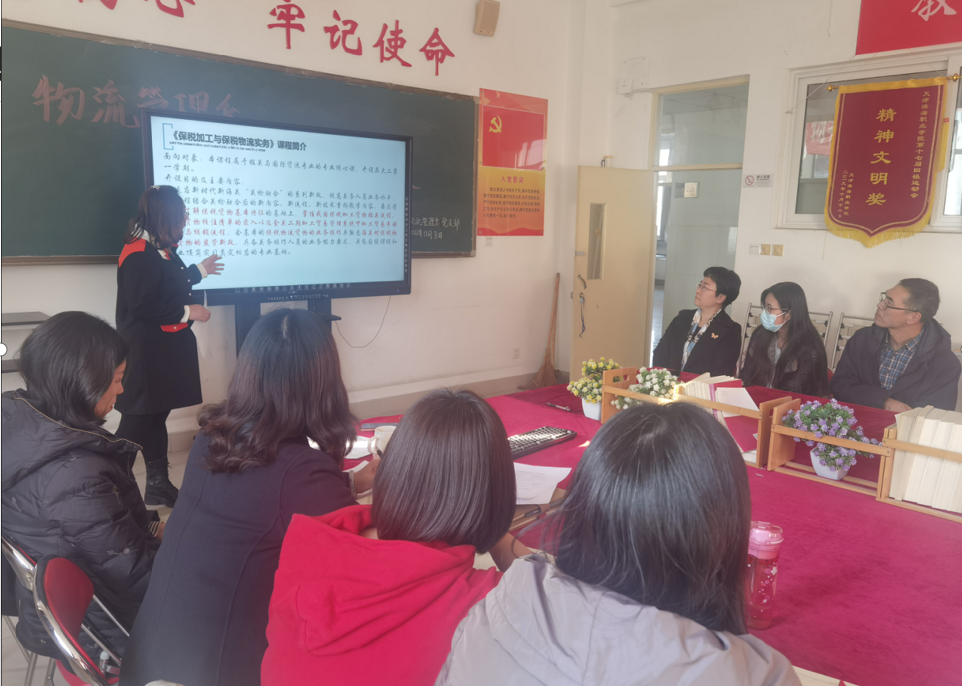 承担物流管理系专业课程教学的3名教师分享了各自课程的思政建设案例。金鑫老师以《保税加工与保税物流实务》课程思政提取要素入手,指出该课程在课程思政建设过程中,主要按照“道、法、律三条主线”润物细无声地将关务人员的职业素养、关务精神等思政元素融入整个教学过程中,并结合课程中项目二保税加工货物关务操作的课程思政引入案例详细介绍了该课程课程思政的实施过程。