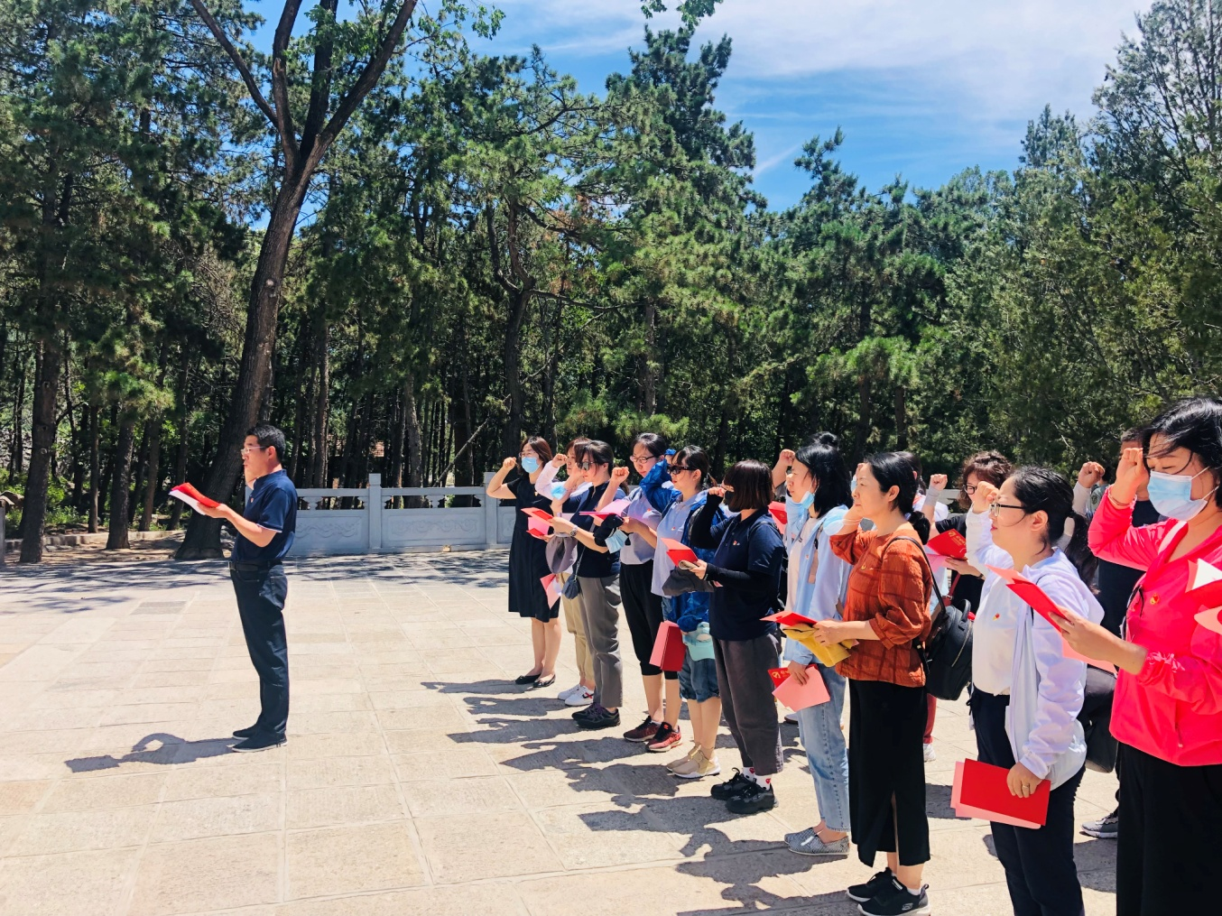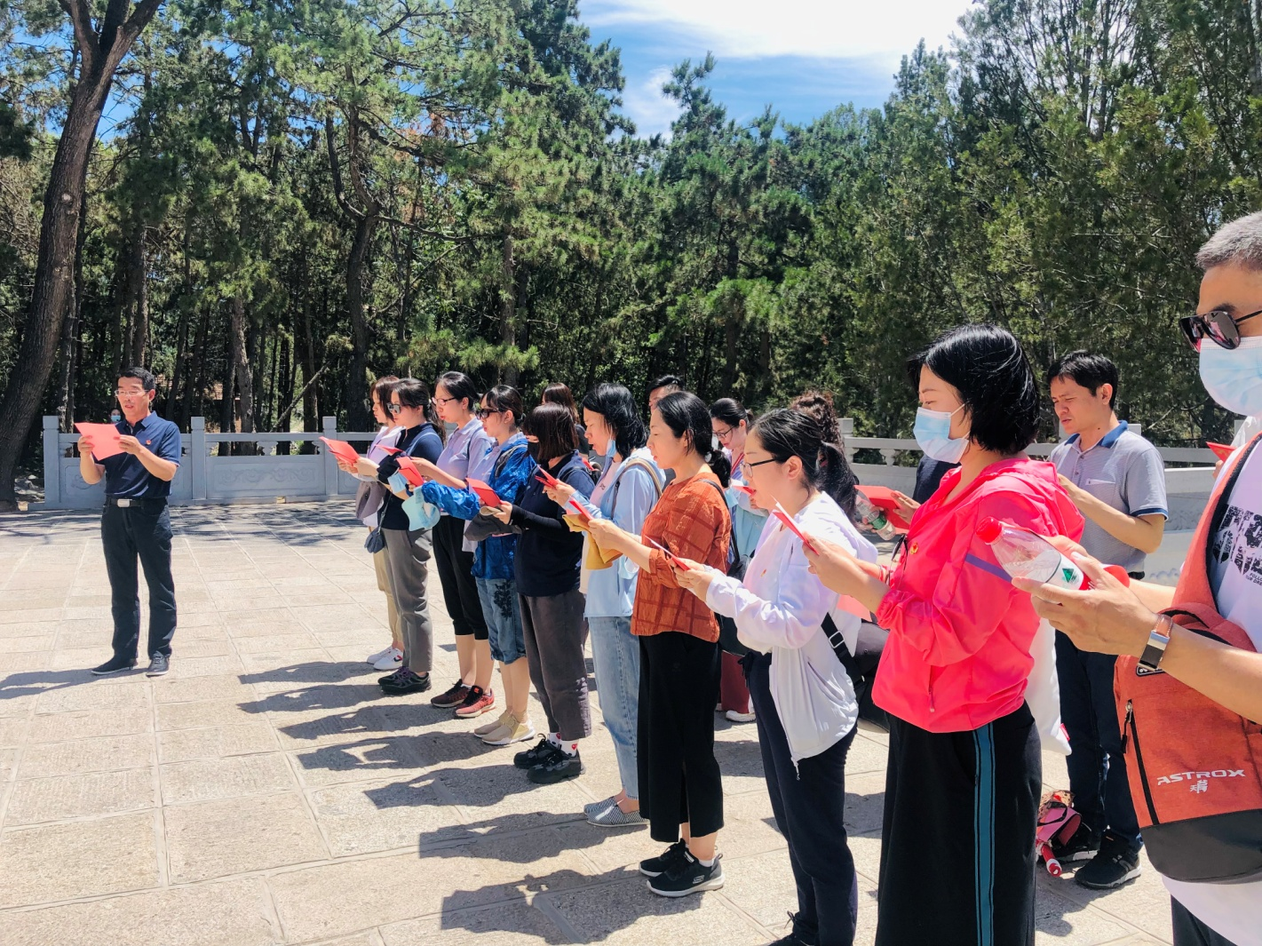 为纪念建党100周年,深入学习贯彻习近平在党史学习教育动员大会上的重要讲话精神,以党史学习教育为契机,传承红色基因和红色精神,进一步激发党员的政治热情,增强党员的责任感和使命感,强化党员的宗旨意识,2021年6月20日物流管理系、经济管理系、后勤资产党支部组织27名党员教师前往红色基地蓟州区盘山烈士陵园,开展“政治生日守初心,传承遗志践使命”为主题的党员教育实践活动。