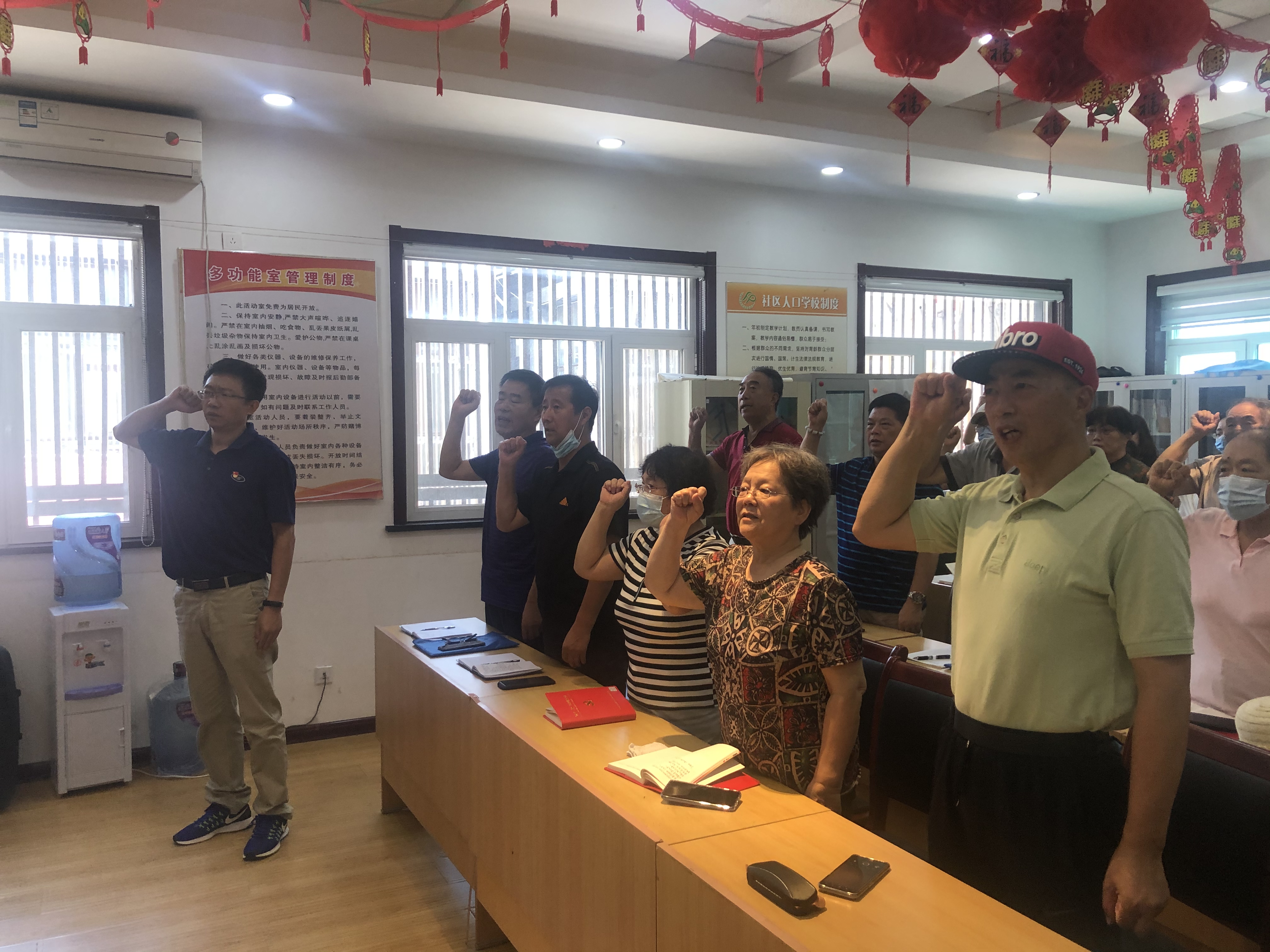 活动第三项,全体党员在新新家园社区委员会胡大爷带领下同唱《没有共产党就没有新中国》。