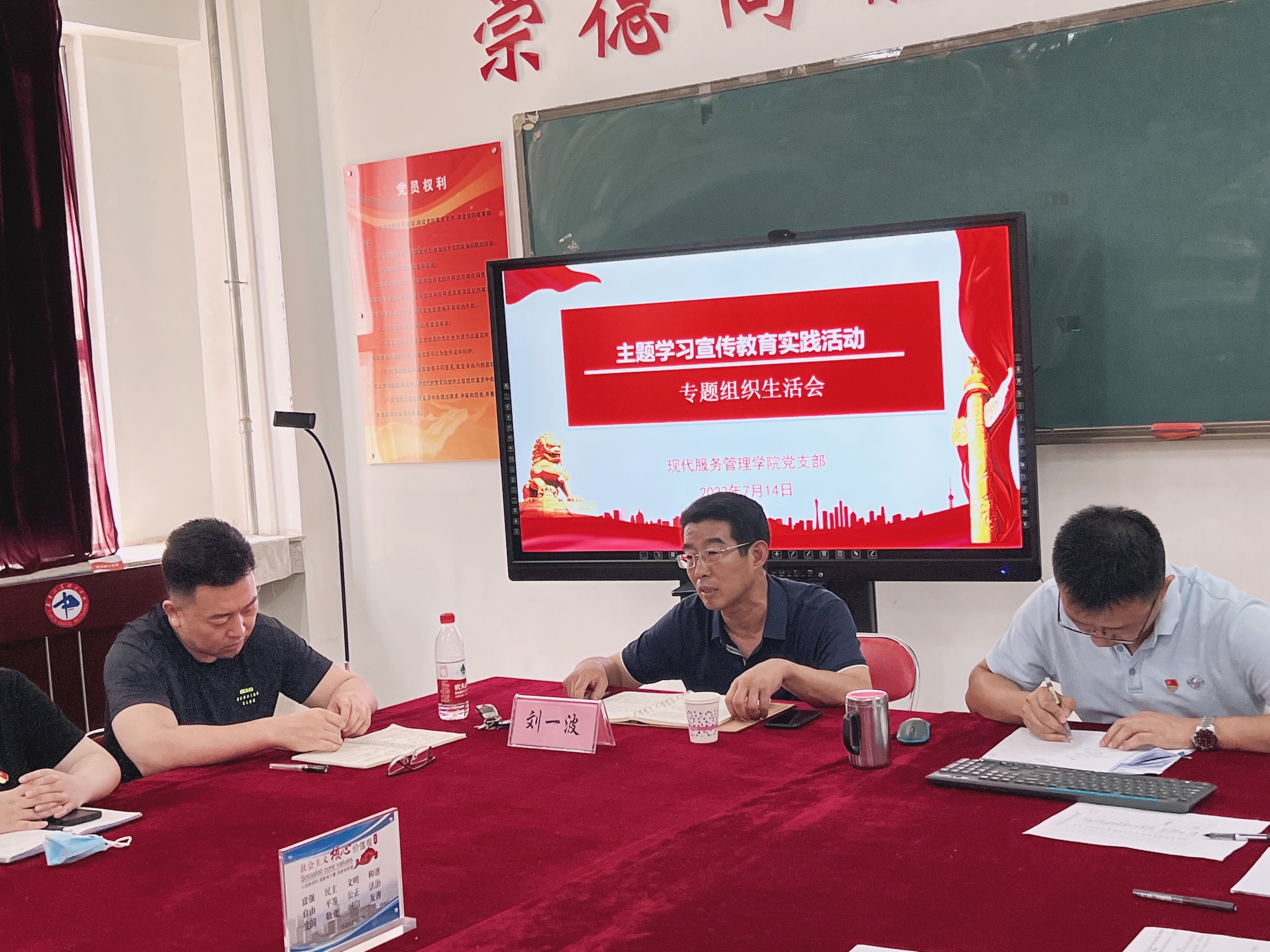为全面深入学习贯彻习近平新时代中国特色社会主义思想,充分激发“二次创业”奋斗激情,我支部于2022年7月14日上午8点30分在现代服务管理学院党员之家开展主题学习宣传教育实践活动专题组织生活会,会议由党支部书记徐公仁同志主持,学校党委委员刘一波副校长参加会议并进行督导。
