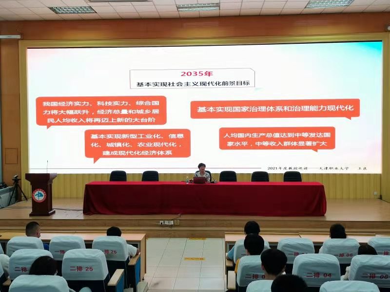 为了进一步贯彻落实习近平总书记在党史学习教育动员大会上的重要讲话精神,使广大青年学生学史明理、学史增信、学史崇德、学史力行,2021年9月22日,永利官网邀请天津职业大学马克思主义学院王良教授为永利官网经济管理系2021级学生代表进行“培根铸魂学四史、百年筑梦立初心”主题宣讲。活动由马克思主义学院书记、院长李玉梅主持。