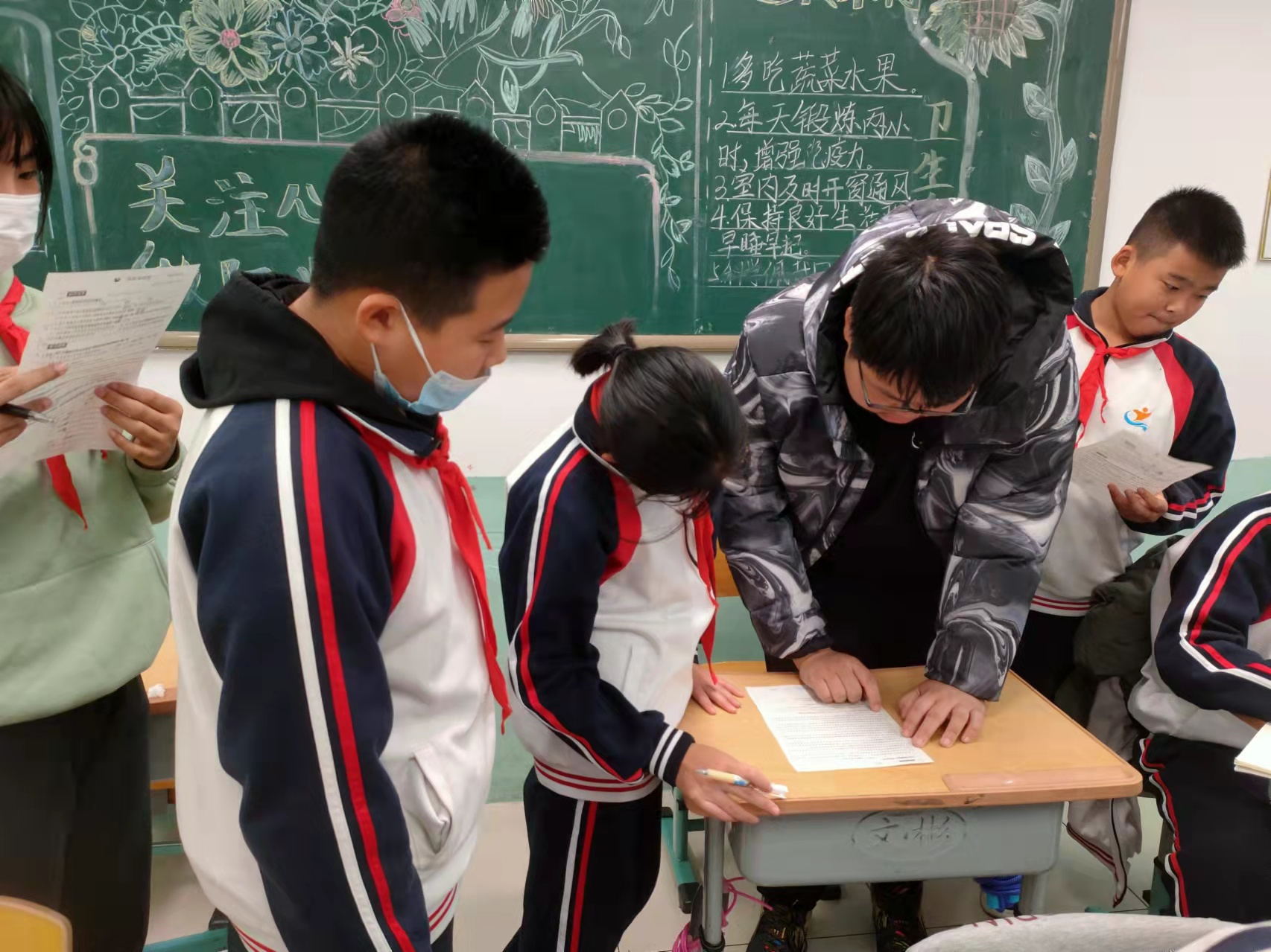 志愿者带领小学生朗读课文