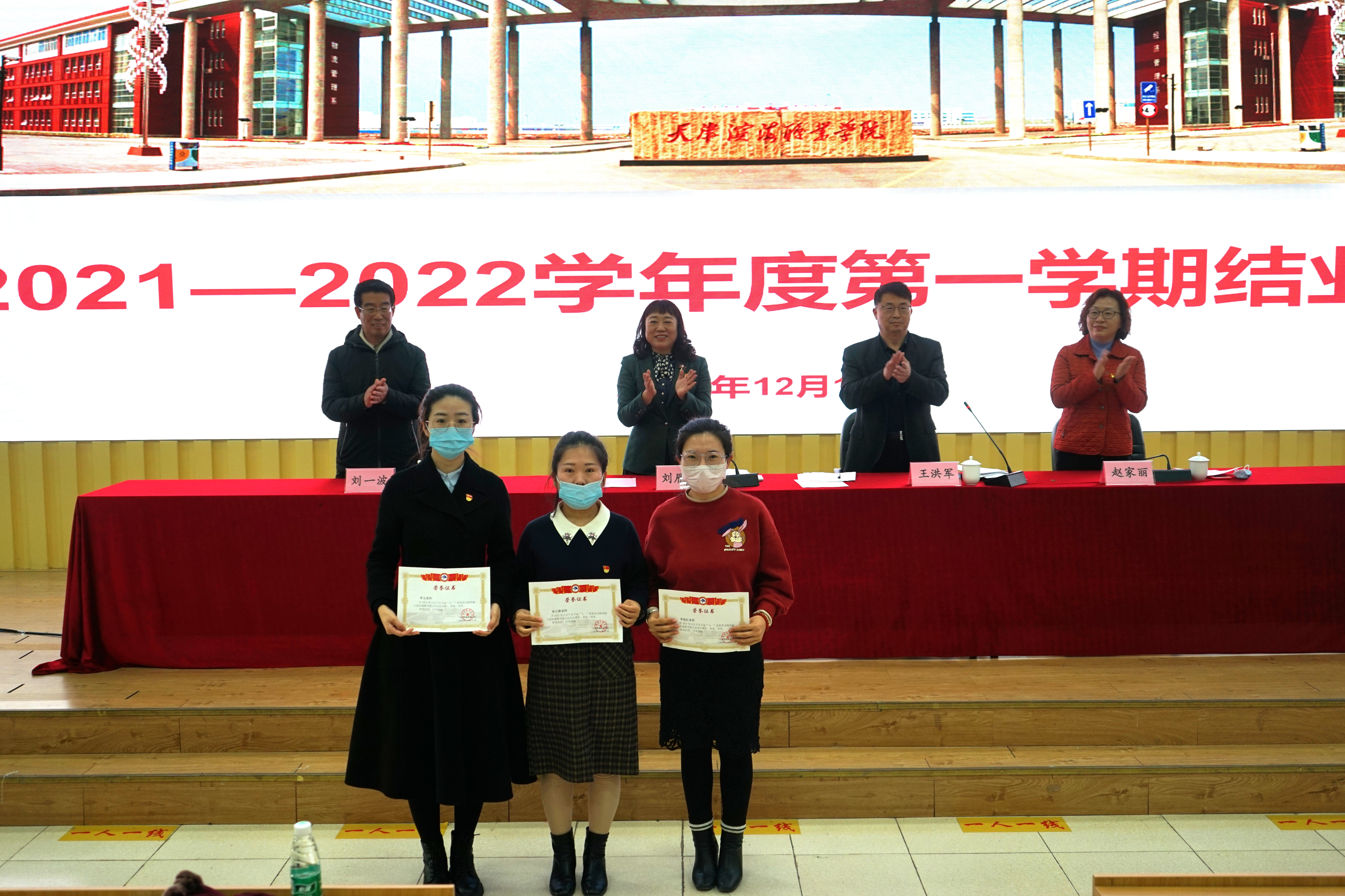 2021年12月17日上午,学院举行2021-2022学年度第一学期结业式,党委书记刘雁红、副院长王洪军、刘一波、纪委书记赵家丽及全体教职工参加。结业式由副院长王洪军主持。