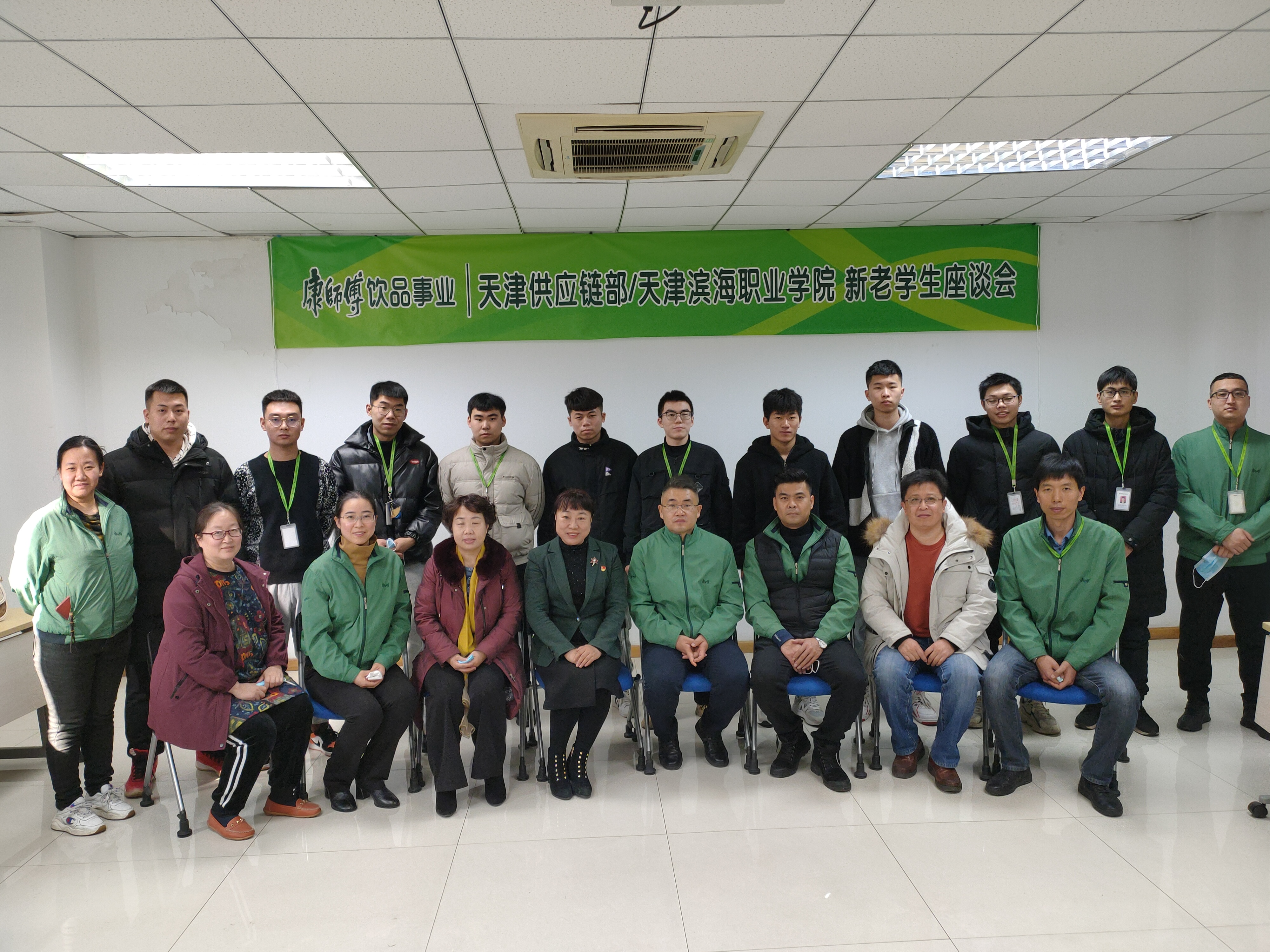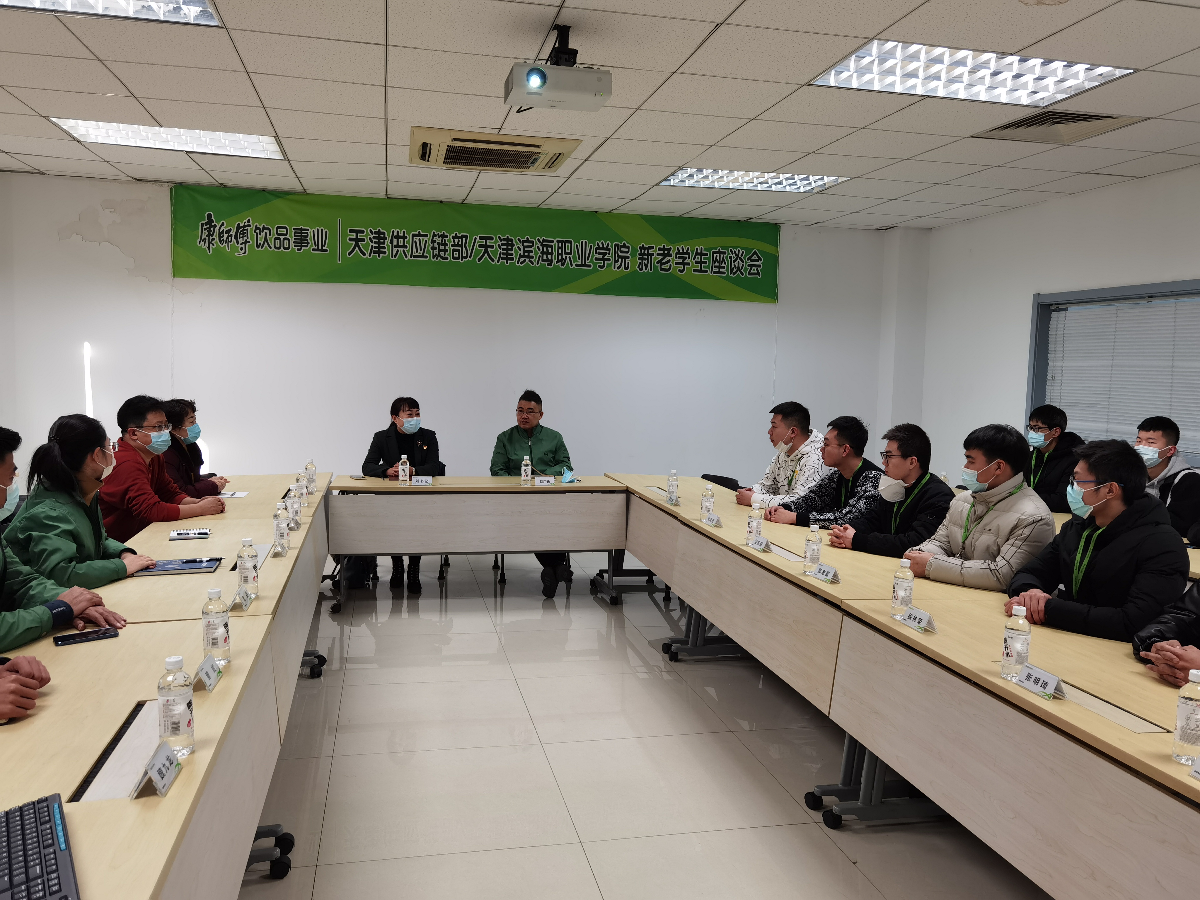 2022年1月27日上午,yl23455永利官网党委书记刘雁红及机电系党支部书记、主任刘秋艳、机电一体化专业教研室主任刘鹏、辅导员相静波来到康师傅(天津)顶津饮品有限公司看望在津工作实习的学生并召开座谈会。实习企业的刘厂长,人事处焦处长,董斌科长(永利官网优秀毕业生)和魏九龙科长(永利官网优秀毕业生)及学生代表参加了此次座谈会。
