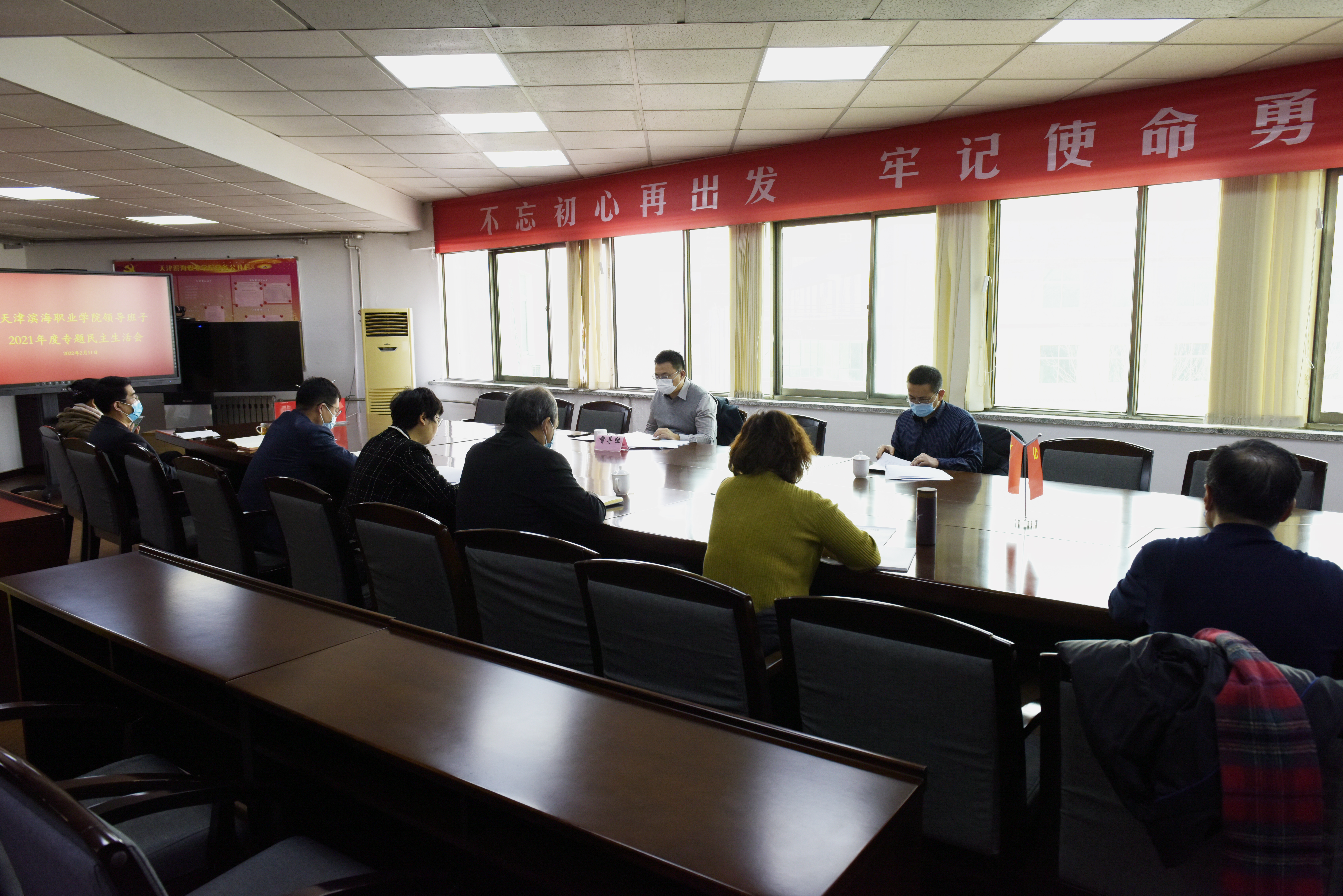 根据《中共滨海新区纪委机关 中共滨海新区区委组织部 中共滨海新区党史学习教育领导小组办公室关于开好党史学习教育专题民主生活会的通知》要求和教体局党委的部署,学院领导班子及成员在学习研讨、广泛征求意见、深入谈心谈话的基础上,紧扣民主生活会大力弘扬伟大建党精神,坚持和发展党的百年奋斗历史经验,坚定历史自信,践行时代使命,厚植为民情怀,勇于担当作为,团结带领人民群众走好新的赶考之路的主题,于2022年2月11日上午,在行政楼406“党员之家”召开2021年度党员领导干部民主生活会。区教体局督导组成员职成教育工作室主任许连升同志、区纪委派驻教体局纪检组申广军同志专程到会指导。会议由学院党委书记王建枝同志主持。学院党委副书记、院长杜学森、副院长王洪军、刘一波、纪委书记赵家丽参加了会议。党委宣传部、党委组织部、党委办公室负责人列席了会议。