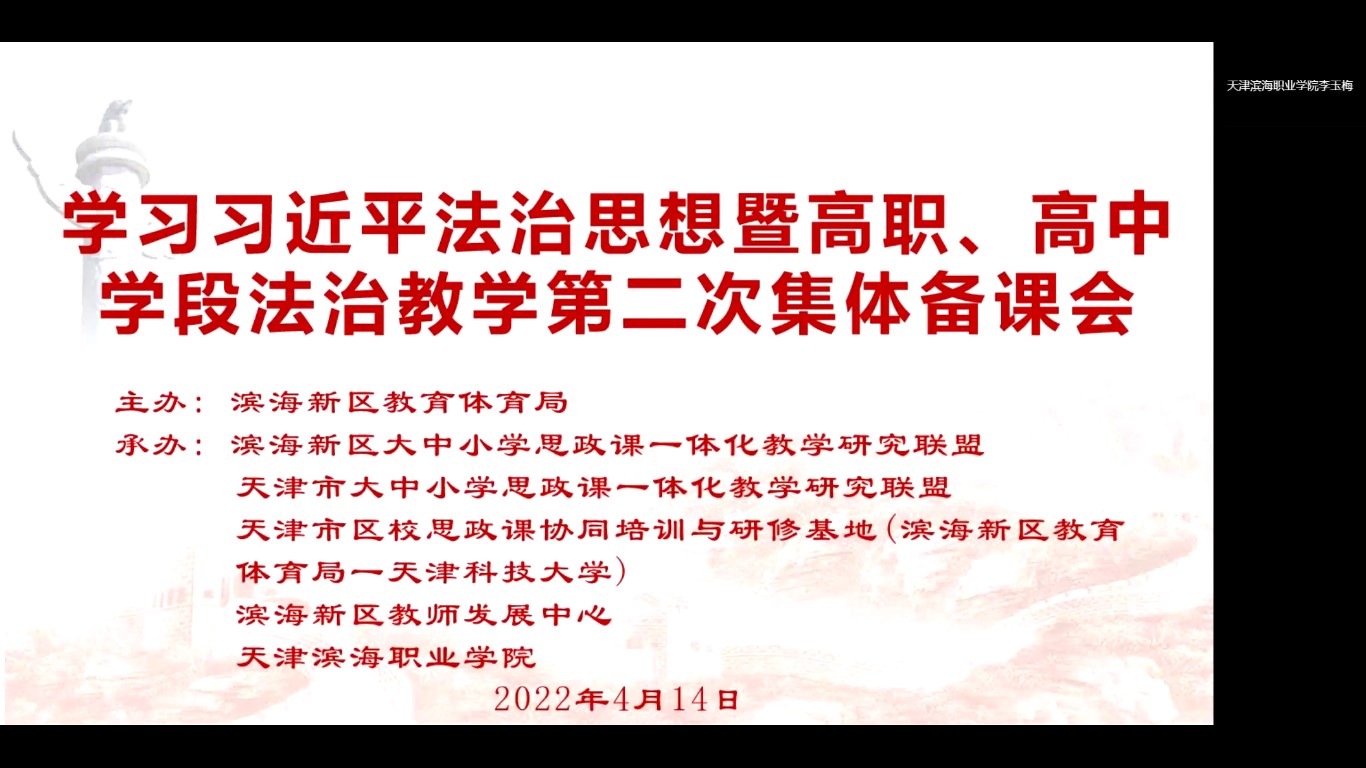 滨海新区举办“学习习近平法治思想暨大学(高职)、高中学段法治教学衔接第二场集体备课会”