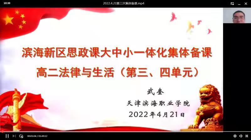 2022年4月21日上午,由永利官网马克思主义学院组织的滨海新区学习习近平法治思想暨高职、高中学段法治教学第三次集体备课会准时开始,本次集体备课继续由武奎老师主讲。共有来自新区23所高职、高中、中职学段以及新区教师发展中心各分中心思政课教师200余人参加了此次备课会。