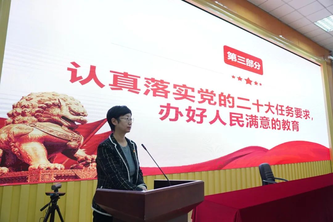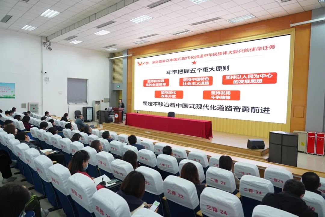 王建枝书记紧扣党的二十大报告原文,重点围绕党的二十大的重大意义、大会主题和主要成果、过去5年的工作和新时代10年的伟大变革、开辟马克思主义中国化时代化新境界、以中国式现代化全面推进中华民族伟大复兴、坚持党的全面领导和全面从严治党、应对风险挑战等方面,对党的二十大精神进行全面系统深入的宣讲解读。