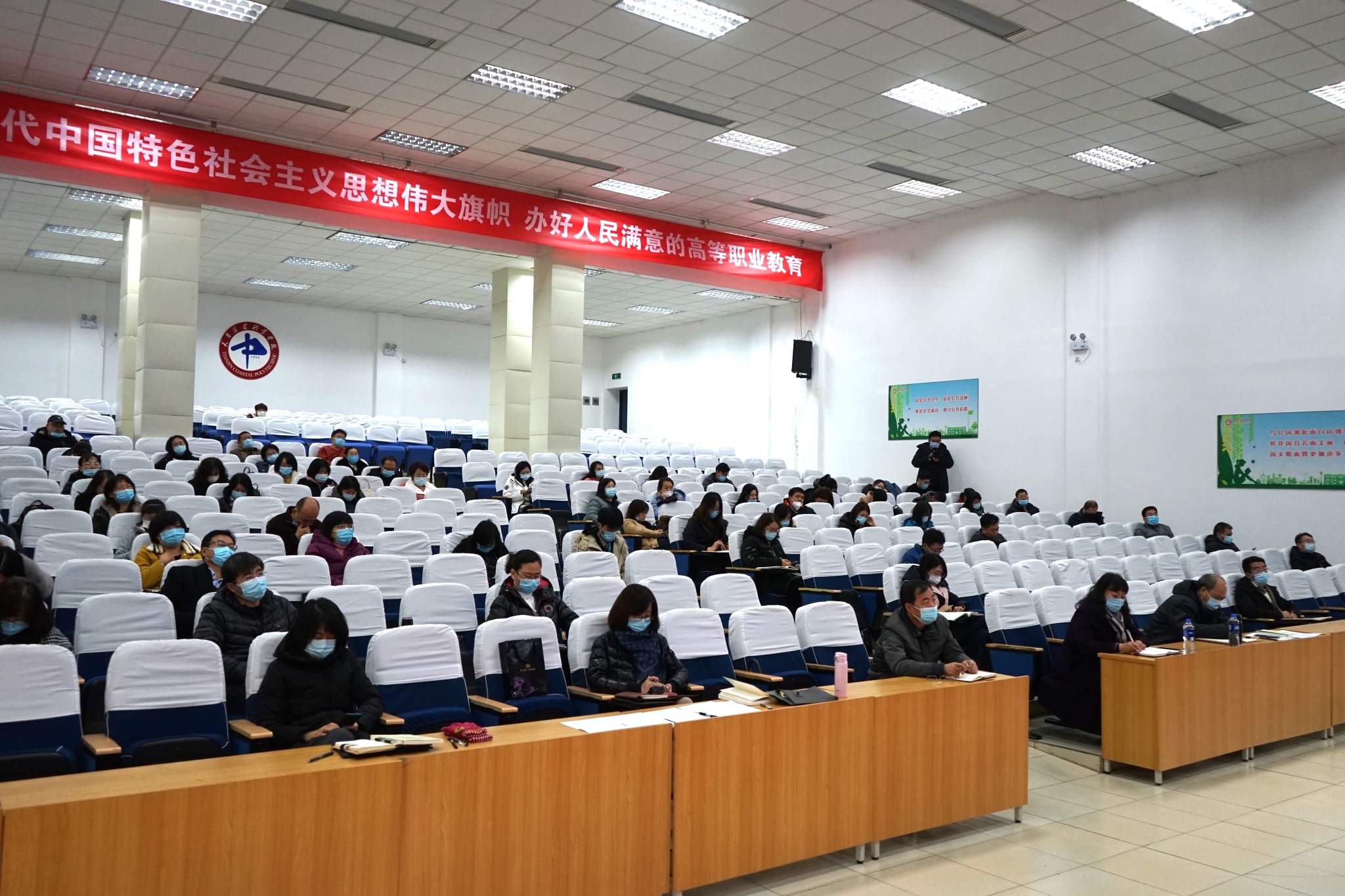 根据教育部党组关于《习近平总书记教育重要论述讲义》(以下简称《讲义》)使用培训的通知要求和市教育两委的通知精神,为帮助学院干部教师用好《讲义》,深刻领会、准确把握习近平总书记关于教育的重要论述,进一步推进习近平新时代中国特色社会主义思想“三进”, 11月23日至24日,学院党委书记刘雁红、党委副书记、院长杜学森、副院长王洪军、刘一波及干部教师代表、任课教师共计500余人次在学院报告厅分会场参加了《讲义》使用网络直播视频培训。