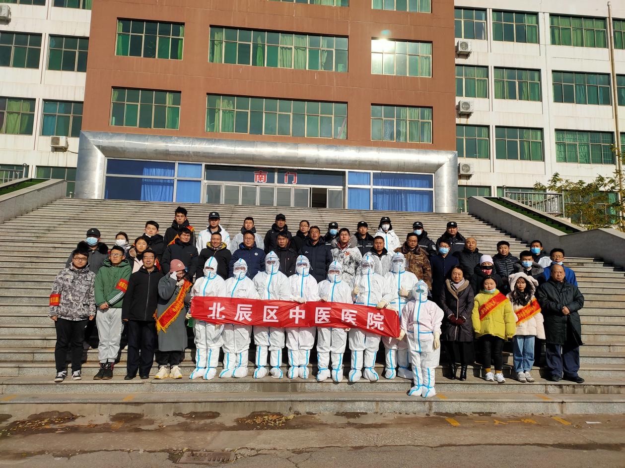 学生志愿者与检测医疗人员、校内党员突击队教师合影