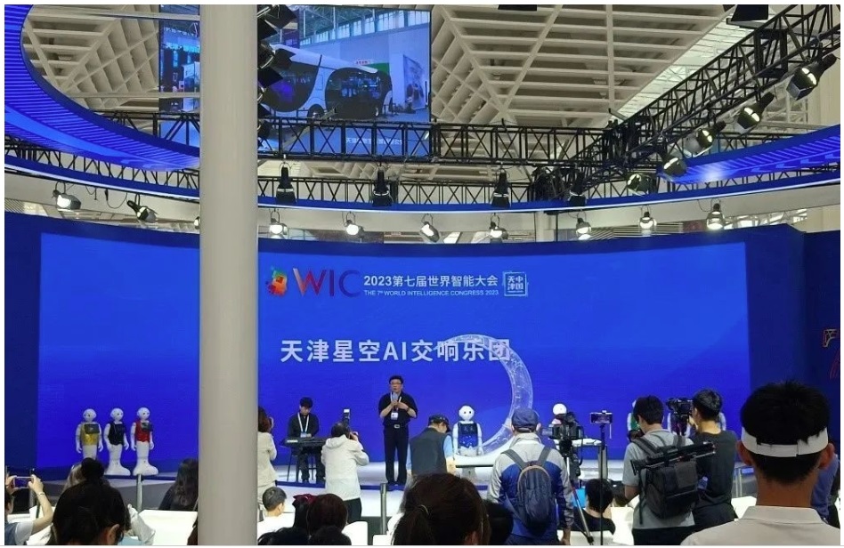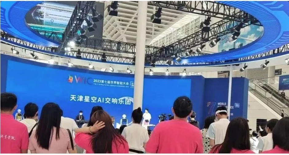 在天津国家会展中心现场,首先视入眼帘的是第七届世界智能大会中国天津,本届世界智能大会以“智行天下、能动未来”为主题聚焦智能科技赋经济社会发展,聚集智慧成果,实现共享共赢。在大厅里天津星空AI交响乐团,全程由机器人演出,真正意义上实现了人工智能化 。