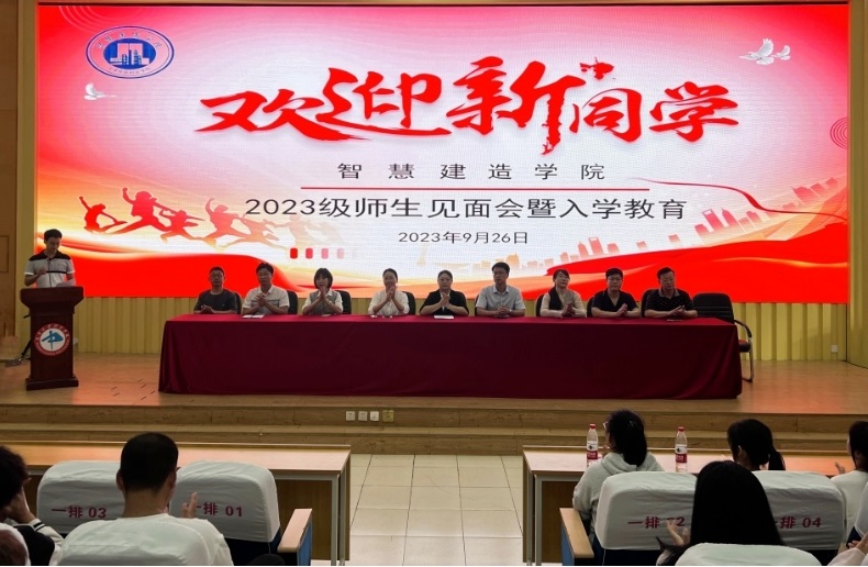 2023年9月26日下午,智慧建造学院在第一报告厅召开2023级师生见面会暨新生入学教育大会,本次大会共四项议程。介绍到场的领导和老师、孙鑫院长致辞、入启蒙教育以及学籍应知应会。智慧建造学院孙鑫院长、卢金岩副院、教研室主任、辅导员及教师代表参加了本次会议大会。会议由辅导员徐唐老师主持。