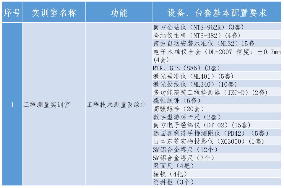 校内实训基地一览表