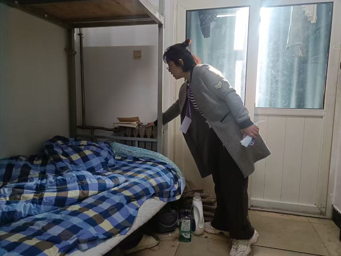 党员老师们分组走访了9号楼每一间宿舍,仔细检查供暖设备的运行状况,包括暖气片是否正常散热、管道有无漏水等情况。每进入一间宿舍,党员老师们都亲切询问学生室内温度是否适宜,并认真记录学生们反馈的供暖问题。